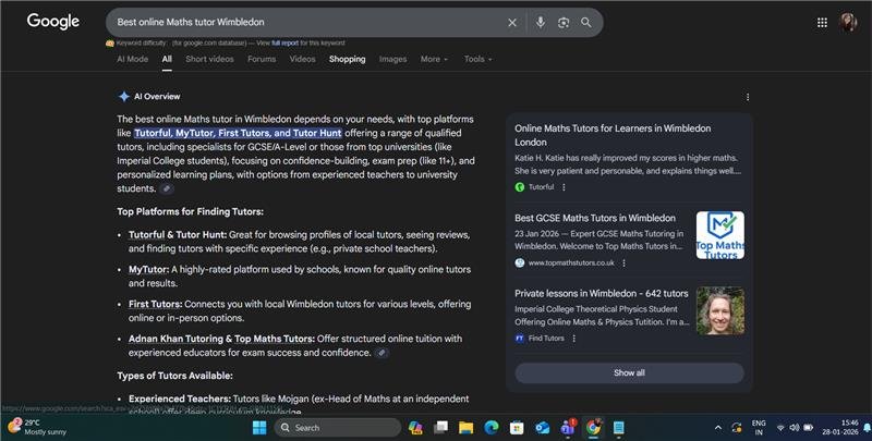 Top Maths Tutors achieved exceptional SEO results within just 15 days through strategic on-page optimization and location-based content. Multiple Page 1 rankings and 4 AEO positions with only partial indexing demonstrate the effectiveness of our approach and position the business for continued growth as remaining pages index and domain authority builds.